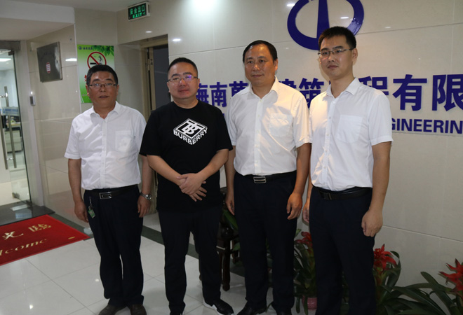 2020年5月7日,海南省省长沈晓明冒着酷暑赴海南绿筑装配式产业基地调研考察,海南省住建厅副厅长刘联伟、定安县委书记陈军、定安县县长李开文随行,定安绿筑公司郭总予以热情迎接并汇报项目情况。