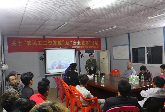 为做好年底农民工工资正常发放事宜,落实工地安全文明管理,12月20日晚,海南万泰组织相关人员深入海口市(美兰区)示范性综合实践基地项目,开展农民工资发放及安全教育培训。