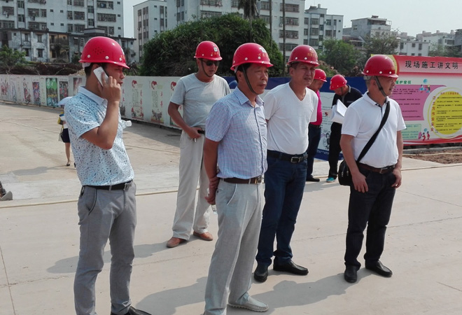 5月12日清晨,由海南万泰公司副总经理颜利带队,总工程师邹进安、工程部主任秦启武以及工程部、总工办、财务部、经营部组成的安全、质量检查组,到公司下属澄迈老城地区的正光观海花园小区、中华坊、绿生花园等三个在建项目进行工地现场检查工作。